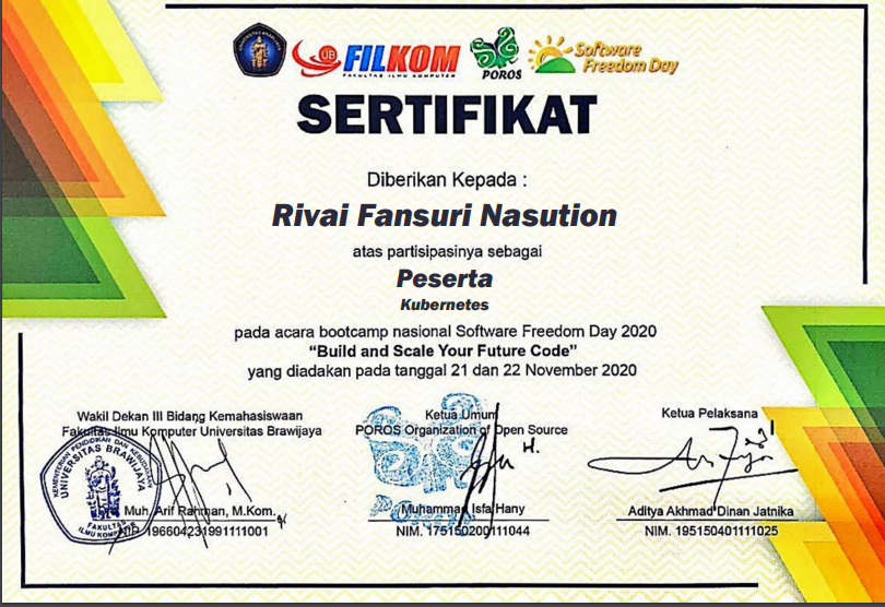Introducing my full name, Rivai Fansuri Nasution, my nickname is Rivai. I am a person who is very interested in the IT field, especially in the field of computer networks, I am also a programmer and logo designer at a freelance web, and I am now managing a wordpress web at a startup. Thus I am very happy to learn new things.